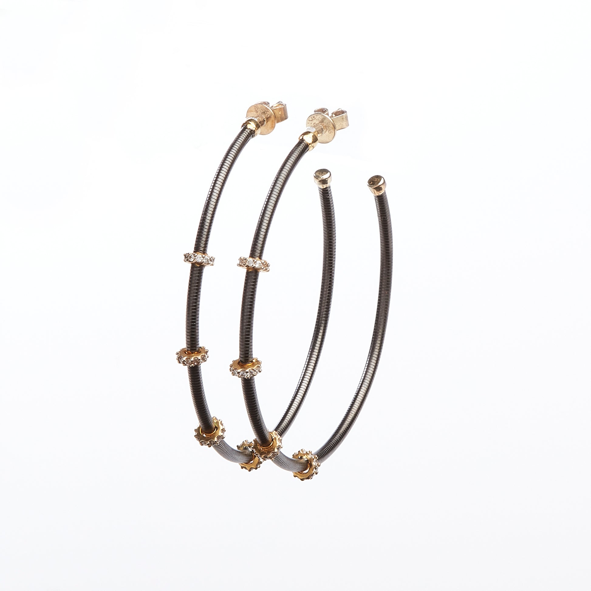 Designed with timeless elegance and effortless versatility, the Alessandra Hoops are expertly crafted in Italy, featuring a sterling silver base with sleek black rhodium plating and four dazzling bands of cubic zirconia for the perfect touch of sparkle.