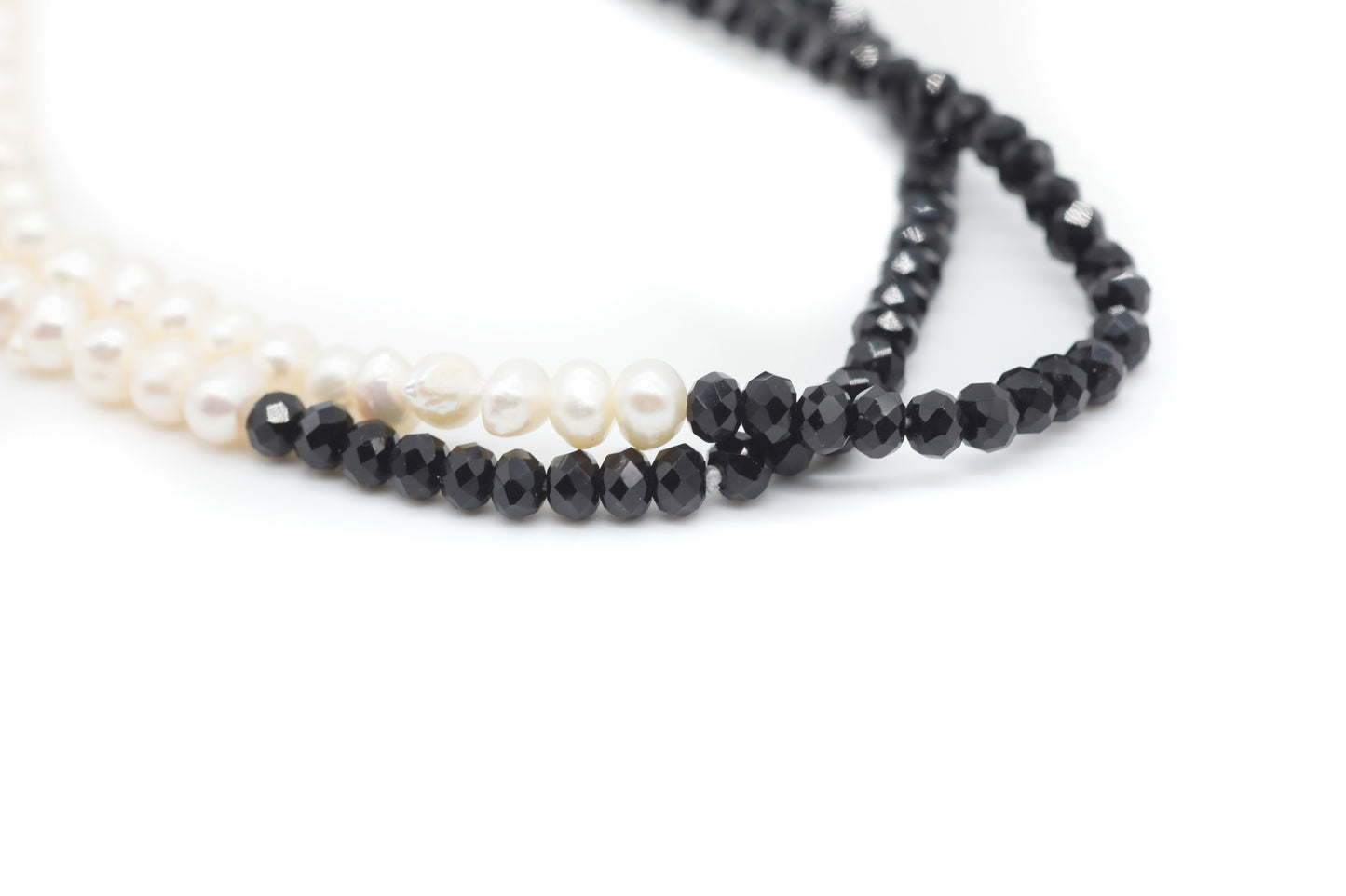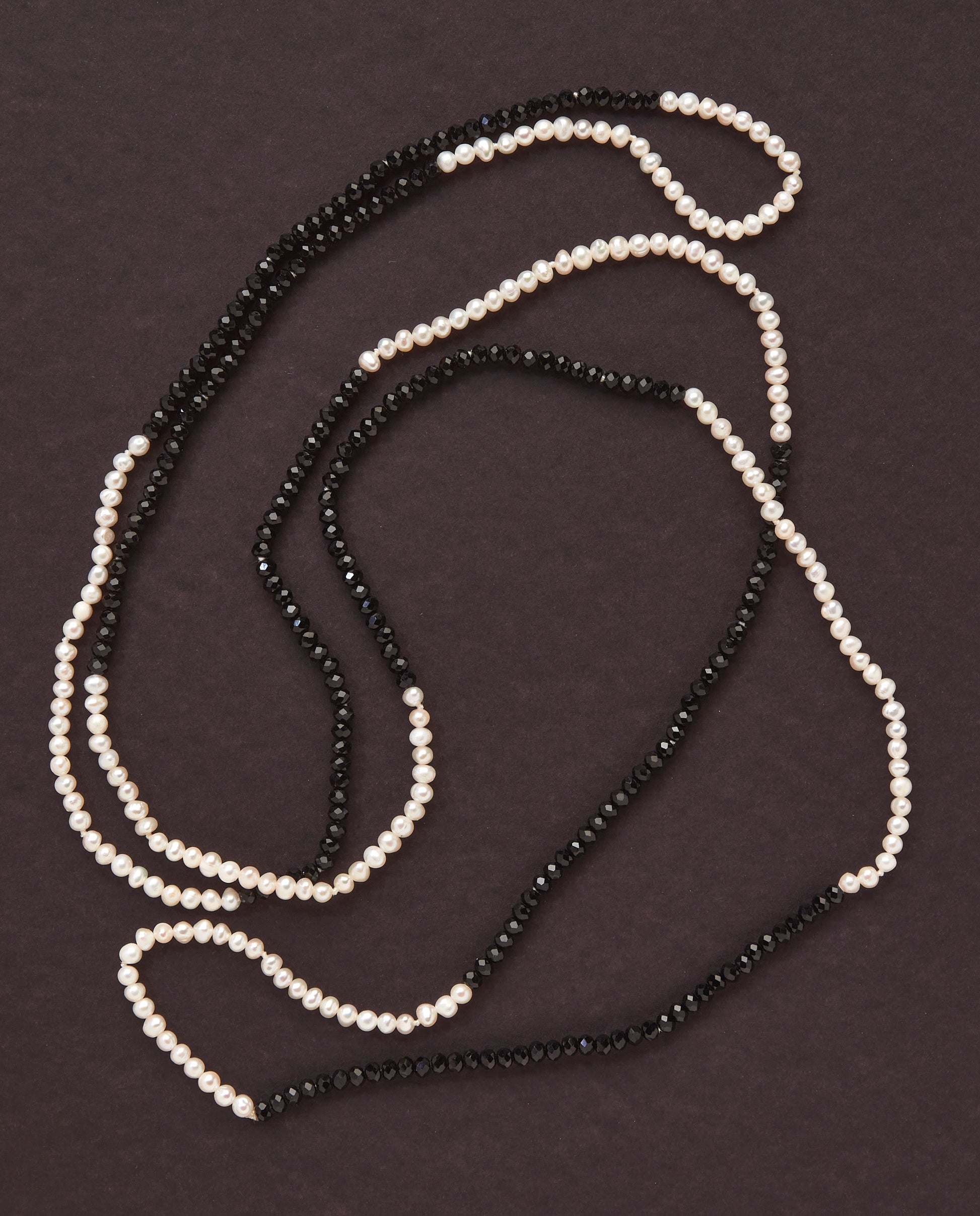 Indulge in sophistication with our versatile 58-inch necklace, adorned with beautiful black crystals and cultured freshwater micropearls.