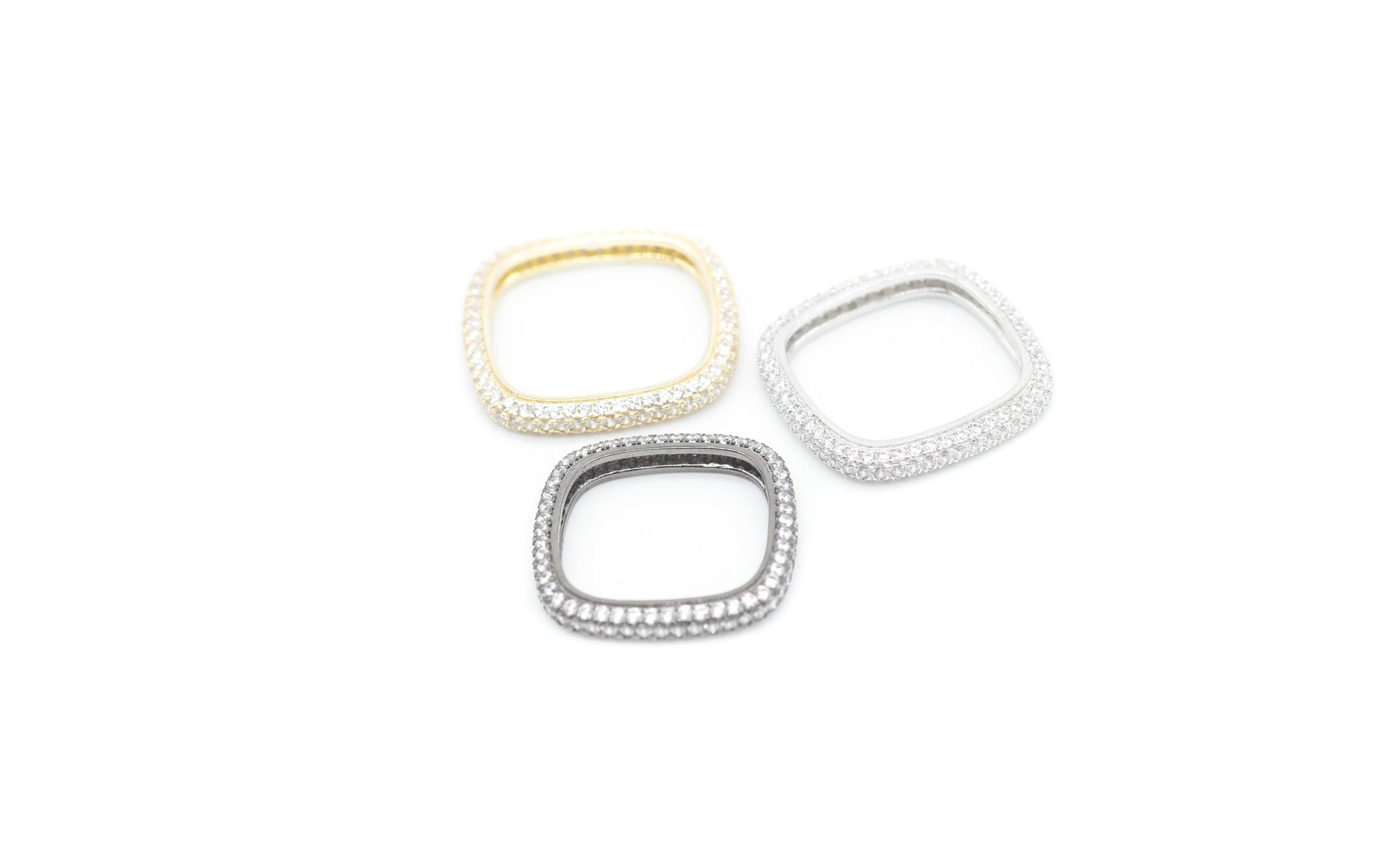 These hypoallergenic rings feature a sterling silver base and three rows of stunning cubic zirconia for extra sparkle. And with options in silver, black, yellow gold, and rose gold...
